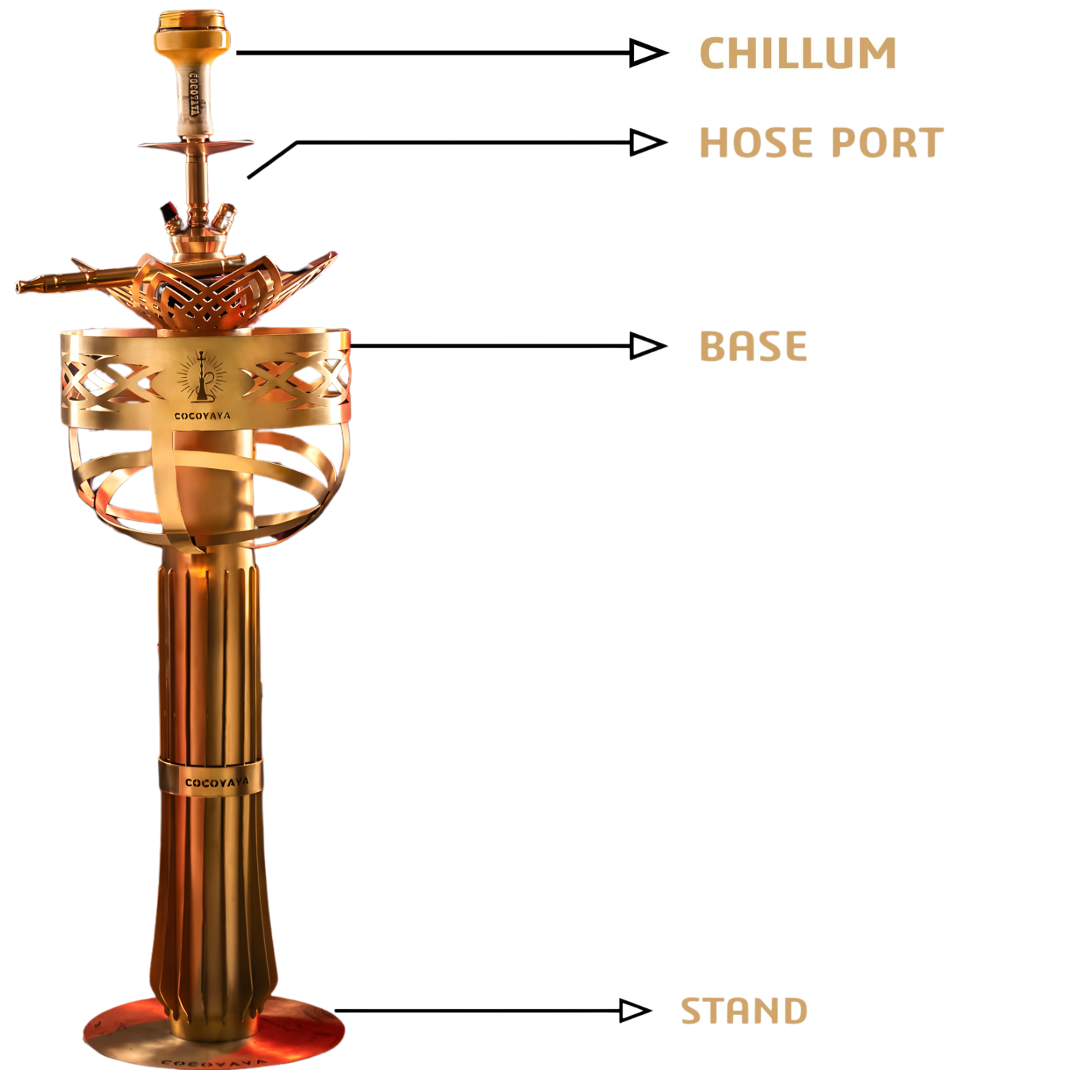 - New Collection: A majestic addition to Cocoyaya’s premium lineup, featuring a tall golden stand with an elegant glass bottle base.